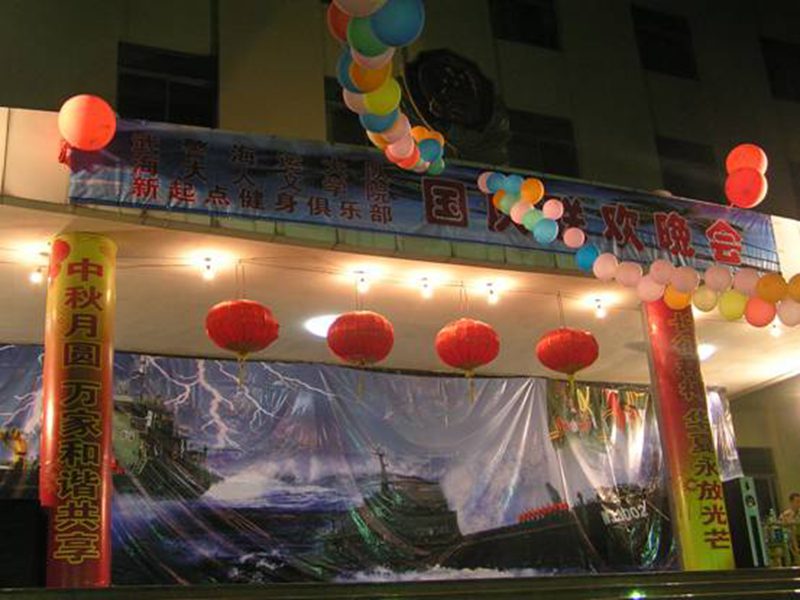 部分学生在院团委负责人谢老师的带领下与海南省武警海运大队举行了一场盛大的庆国庆迎中秋纪念长征胜利七十周年联欢晚会,到场的领导嘉宾还有武警海运大队的副政委、陈大队长等等。整个晚会气氛浓烈,广大官兵和学生代表热情洋溢,两位主持美丽帅气又幽默风趣,晚会现场高潮迭起。