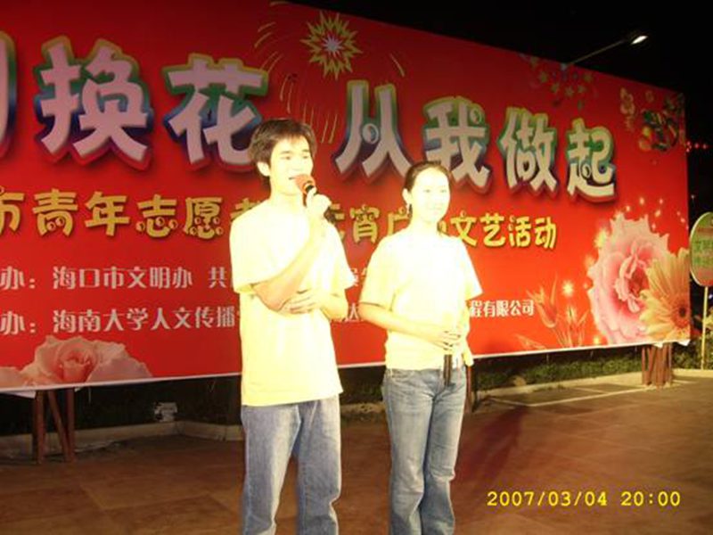 2007年3月4日,春风和煦、暖意袭人。在一年一度的元宵佳节到来之际,人文传播学院团委组织的一百名志愿者带着宣扬文明、传播祝福、共建和谐海口的重任踏上了前往万绿园参加“文明换花,从我做起”大型公益活动的征途。本次活动是“弘扬雷锋精神,参与志愿服务,共建和谐海口”社区和谐志愿服务系列活动之一,由共青团海口市委、海口市文明办主办,由女同做爱