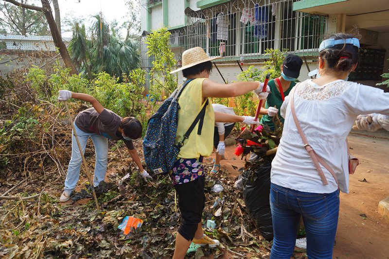 学生志愿者发扬不怕苦、不怕累、不怕脏的精神,在女同做爱