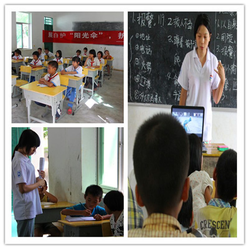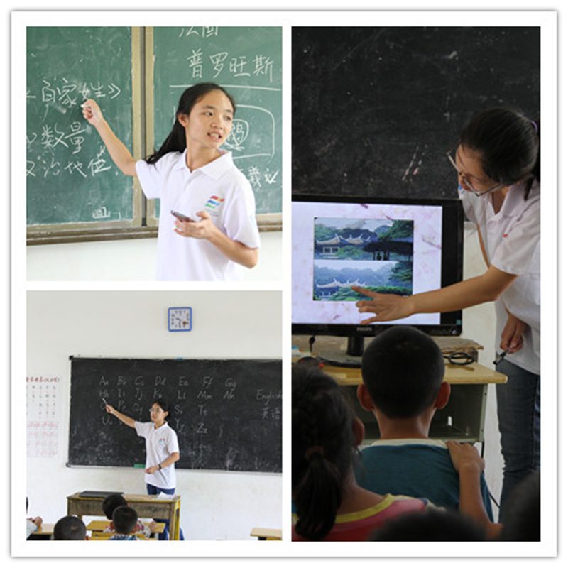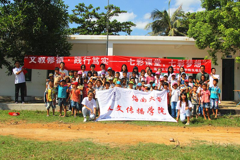 支教志愿者并为志愿者送来生活必需品。 本次支教活动以丰富课堂内容、拓宽学生视野为主,辅以开展“阳光伞” 安全教育活动。开设的课程板块丰富多彩,支教志愿者采取的授课方式灵活有趣,注重互动环节,深受学生欢迎。此外,支教活动的顺利进行也离不开志愿者们的吃苦奉献精神和彼此间的团结协助。章宪小学地处陵水黎族自治县较偏远山区,教学设施条件较为简陋,可志愿者们不怕苦,主动地适应环境。在强台风“威马逊”影响期间,学校被迫停课,志愿者们沉着应对并采取积极的防护措施,并保证了课程计划的顺利实施。 23日下午,在孩子们依依不舍的告别声中,志愿者们结束了十天的支教活动。十天虽短,志愿教师们却与这里结下了深厚情谊。支教力量虽小,可再小的力量也是一种关爱和支持。参加社会实践的志愿者们表示:用心支教,用爱支教,将继续把关爱传递给贫困地区的孩子们!(文/张灵馨)