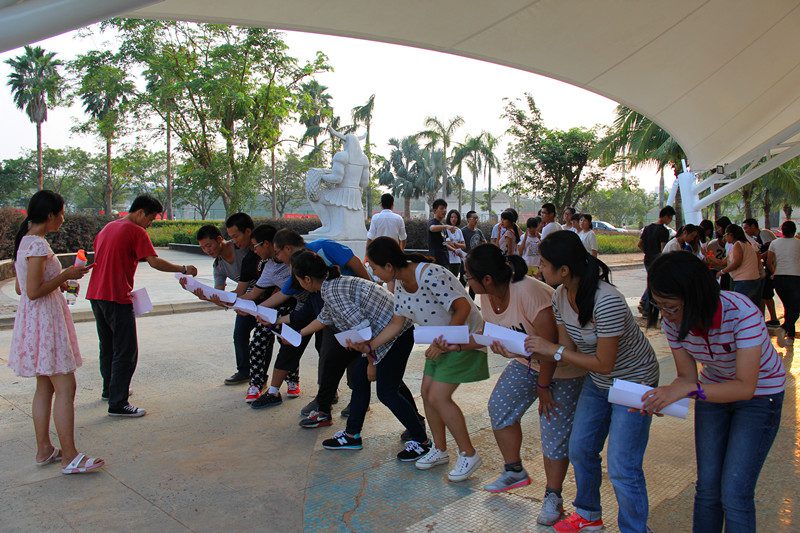 城西校区神农广场正式开始,本次活动由人文传播学院团委副书记崔玉、学生会主席李润东主持,由团委学生会全体成员共同参加。 本次素质拓展活动共分为三个环节。在第一个环节中,每队共有15分钟的时间设计出本队的队名、队徽、队歌、口号和队形,时间结束后各队将对讨论内容依次进行展示。在展示环节,风趣幽默的团委学生会的成员们各出奇招。在队名的选取上,有声名霸气的“复仇者联盟”,有清新文艺的“好大一棵树”。队歌的展示更是五花八门,《当》、《爸爸去哪儿》等荧屏热曲也因大家搞怪的演唱而极具娱乐效果。接着第二环节活动正式开始,本节活动内容为:每个队员说出自己的喜好以及自己的名字,后面的队友不仅要把重复之前的所有队友的说话内容,而且也要说出自己的喜好。通过这个环节,大家在相互之间有了了解和认识,消除了陌生感。第三个环节是每队协调传递乒乓球,直至乒乓球到达终点,则游戏结束。得益于两轮中每队的磨合和了解,在这个环节中各队员之间的协作能力和默契程度都有了很大的提高。三个环节的比拼结束后一分队“好大一棵树”的队友们获得了第一名,第六队“复仇者联盟”位居第二。活动结束后,团委副书记崔玉对此次活动进行了总结。她指出,通过为期一下午的素质拓展活动,相信大家都在这个过程中相互有了了解,收获了很多。此次素质拓展活动,意在为团学新成员树立一种责任意识,培养团学成员对团队的责任,做一个有责任感、融入团队、奉献自己的团委学生会干事。 融入集体,共创未来。这次的素质拓展活动使新成员更好更快的融入到团委学生会这个大家庭中,感受到团学给予每个成员的温暖,大大提高了团委学生的凝聚力,使团学内部更加的团结友爱互帮互助。相信新成员的加入必将谱写出人文传播学院团委学生会新的篇章! 新闻部 杨振