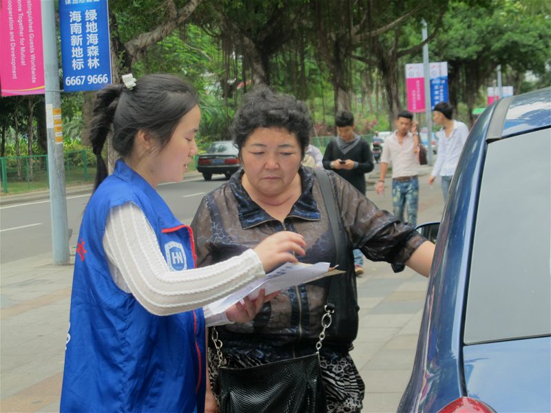 经过大约一个多小时的奔波和准备,终于在8:40左右于海口市的省妇幼保健院旁边的一个邮政局开始了我们的劝募活动。 大约在10:00左右,天空突然下起了大雨,可是我们的志愿者始终坚守在自己的岗位上。此时此刻,志愿者的形象得到了最好的诠释,也得到了最大的肯定——路人纷纷给我们的志愿者撑伞。