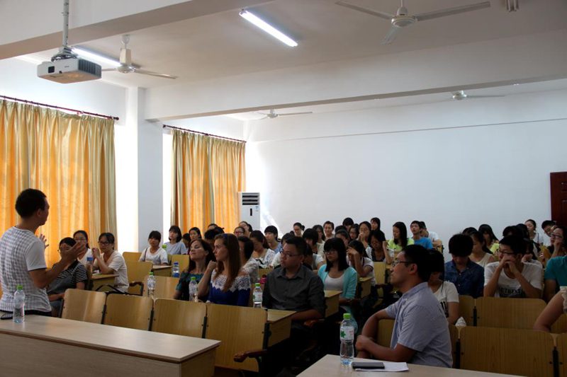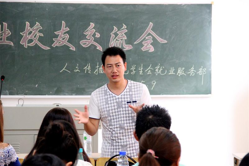 生活学习的经历,将自己大学四年的经验传授给同学们,然后他讲述了自己大学毕业之后的奋斗和努力,告诫同学们大学期间要认真学习,大学学习的知识对于人生的帮助是巨大的,同时也要努力发展自己的兴趣爱好,让自己有所专长。在他之后进行交流的是戈多兄弟创始人之一的赵朝举,他在讲台上与同学们交流的同时还让大家通过微信面对面建群的功能提问并进行交流。他主要讲述了自己大学毕业之后艰辛创业,坚持自己梦想、坚持做自己的电影工作室的经历。最后他对同学们到他们的公司进行学习表示十分支持和欢迎。 汉语国际教育专业校友交流会邀请到2011届毕业生韩剑丰、2013届毕业生明炜两位学长以及三位留学生参加。公衍峰老师首先介绍了到场嘉宾,以及此次校友交流会的目的。接着由明炜学长与同学们分享经验,交流中他谈到自己大学时期的准备与努力和在泰国支教的经历,并鼓励同学们不要因为挫折灰心丧气。得到了同学们很大的共鸣。接着由三位留学生和汉语国际教育专业的同学们分享学习心得。随后,本专业首届毕业生韩剑丰学长与同学们进行了亲切交流,分享了自己职业规划的经历和经验,为同学们提供了大量专业学习的资源。校友还给同学们留下了自己的联系方式,表示随时愿意为同学们提供相关服务,希望能够通过自己的努力帮助大家更好地走好人生之路。 交流会在同学们的掌声中圆满结束,结束之后同学们仍然意犹未尽,去找几位学长对自己的疑惑进行解答。校友交流会的圆满举办不仅为同学们提供了一个交流的良好机会,也为大家传授了大学学习和生活宝贵的经验,同时密切了专业内部不同年级直接同学的联系,为同学们未来的发展提供了宝贵资源。衷心希望同学们能够通过这次的机会来提高自己,能够找到适合自己的发展方向,树立自己对未来的目标并为之努力。