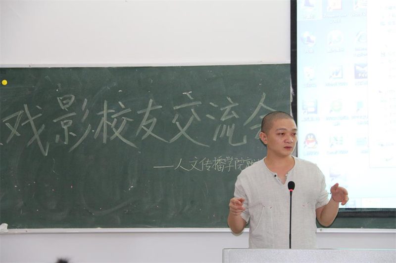 戏剧影视文学专业交流会开始之时,王森森老师首先对参加交流会的几位校友进行了介绍,并通过播放余庆的作品《抱罪长眠》的节选片段让同学们对几位学长的能力和发展状况有了更加直观的认识。在王森森老师开场之后首先是余庆和同学们进行交流,他先讲述了自己在女同做爱