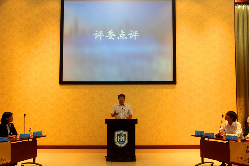辩队主要的观点为,现代社会分工越来越明确,每一个大学生都应该立足自己的专业进行深入的学习。只有自己非常精深于自己的学业才能在未来的竞争中处于不败的地位。“材子佳话”队认为大学生应该在学好自己的专业课知识的前提下加深对其他知识和技能的学习。在攻辩和自由辩环节,“文韬武略”辩论队表现十分的优秀和突出。“我害怕失业就要博学多识掌握多种技能,那我害怕失恋是不是就要多交男朋友”以及“孙悟空有七七八十一变,但只要唐僧一念紧箍咒就制服了孙悟空,还是术业专攻的好”两句经典的辩论不仅仅为现场送去了很多欢乐,也赢得了阵阵掌声。最后在总结陈词过后,评委进行了离席商议。海南省演讲协会副会长、旅游学院办公室主任李晓东老师进行了精彩点评,他将每个环节分开进行分析,指出学生们的优点和不足,并提出很多切实可行的珍贵建议。最终“文韬武略”辩论队以4:1的优异成绩取得本场辩论赛的胜利。