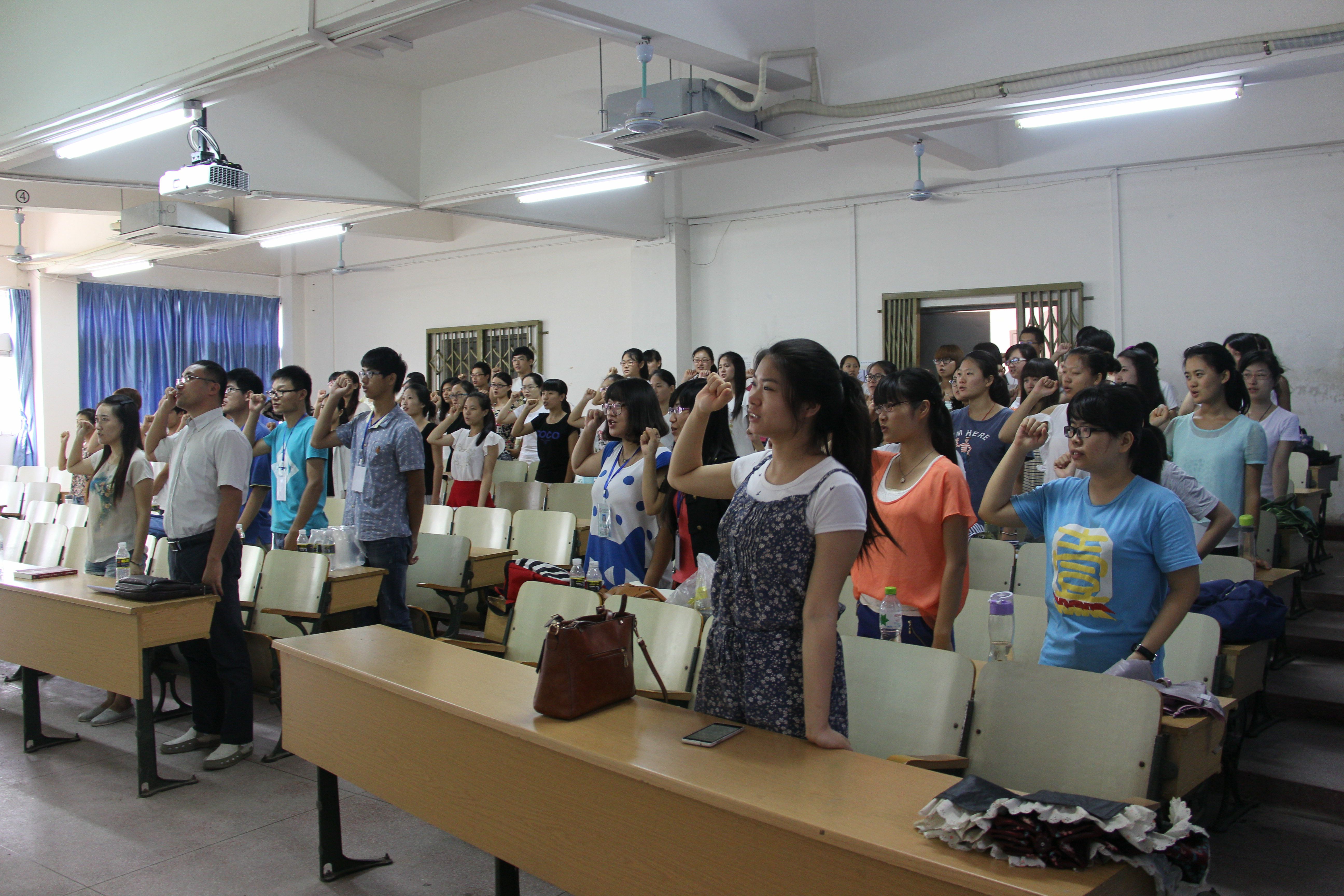 第二教学楼110教室如期举行。本次宣誓大会由人文传播学院团委学生会生活部主办,学工办主任公衍峰老师携同全院得到国家励志奖学金、国家助学金、海南省优秀贫困学生奖学金等在内的近百名同学一同参加。 下午3时,活动在李鑫同学的主持下准时开始。首先是嘉宾发言,公衍峰老师进行了发言。他和大家一起探讨了本次活动的意义。随着我国教育事业的完善和发展以及社会公益事业的兴起,近年来很多的贫困大学生都能够享受到国家和社会的资助,从而使得贫困家庭学生也可以安心完成学业。我们在享受这些资助的同时也需要学会感恩,时刻怀着一颗感恩的心用力所能及的行动回报社会。同时,公老师也希望同学们在学有所成之时回报社会,用爱的方式将公益事业进行下去。嘉宾发言结束后,活动进入了第二个环节,微电影短片欣赏。在场学生一起欣赏了公益微电影《诚信杂货铺》,该影片讲述的是一位年迈的老人几十年如一日坚持在社区经营一家杂货铺,为邻里提供日常生活用品。在老人因病住院期间所有购买货品的邻里都留下了写着购买内容的纸条和应付的金钱。整个交易过程无人监督却又都诚实守信。微电影观影结束后,全体到场人员都进行了现场签名活动,签署了一份诚信感恩励志的承诺。最后全体到场人员进行了宣誓,誓做一位诚信感恩励志的当代大学生。 做为当代大学生,我们应该时刻怀着感恩的心感谢国家和社会的资助,同时我们也要学会励志,励志刻苦学习,成为一个有社会责任心的时代青年。 新闻部 索金炜