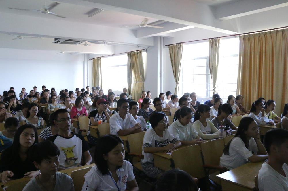 学子的暑期社会实践进行指导,积累了大量的暑期社会实践经验,对暑期社会实践的选题、立项、调查报告写作等均有着丰富的经验,十分熟悉暑期社会实践的各个环节。他首先讲述了暑期社会实践开始时选题的技巧,让同学们选一些贴合现实生活的课题,然后着重讲述了暑期社会实践调查报告的写作。他认为调查报告的写作一定要注重真实性,要用数据说话,数据是调查报告中一个重要的点。然后,他通过调查报告各个部分的写作要求将自己归纳总结的注意事项及技巧进行了讲解,并通过一个暑期社会实践调查报告的实例来进行讲解,让大家对暑期社会实践调查报告的写作有了进一步的认识。