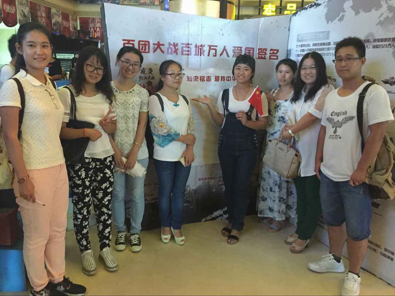 有关组织开展“开学第一课”的文件精神,特举办《百团大战》观影活动。2015年9月3日下午2点,人文传播学院各党支部集聚中影国际影城,集体观看了大型抗战史诗战争片——《百团大战》。