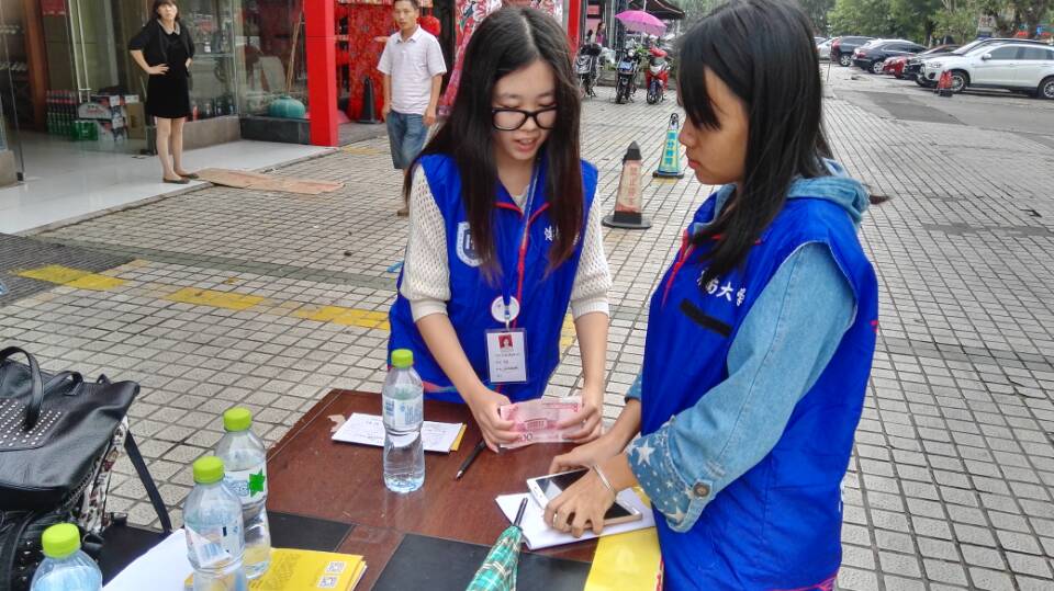 在活动中,志愿者们两人一组,在劝募地点附近奔走。阳光散落在他们的肩头,像是被赋予的战衣,更像是希望的重担。一次次劝募下来,日光渐渐焦灼,温度也开始上升,志愿者们依然斗志昂扬,热情真诚地与每一位驻足的行人交谈。在劝募过程中,志愿者们受过白眼和冷漠,也在马路边茫然徘徊过,但是最后他们还是互相鼓励,调整好情绪后,依旧用微笑面对每一个人。就这样,在志愿者们一点一滴的努力下,劝募慢慢变得顺利起来,不断有路人慷慨解囊。每接过一张爱心的一百,志愿者们都开心地向捐赠者道谢,眼眸里闪烁着光芒。最终,两天的活动共筹集善款约800元。