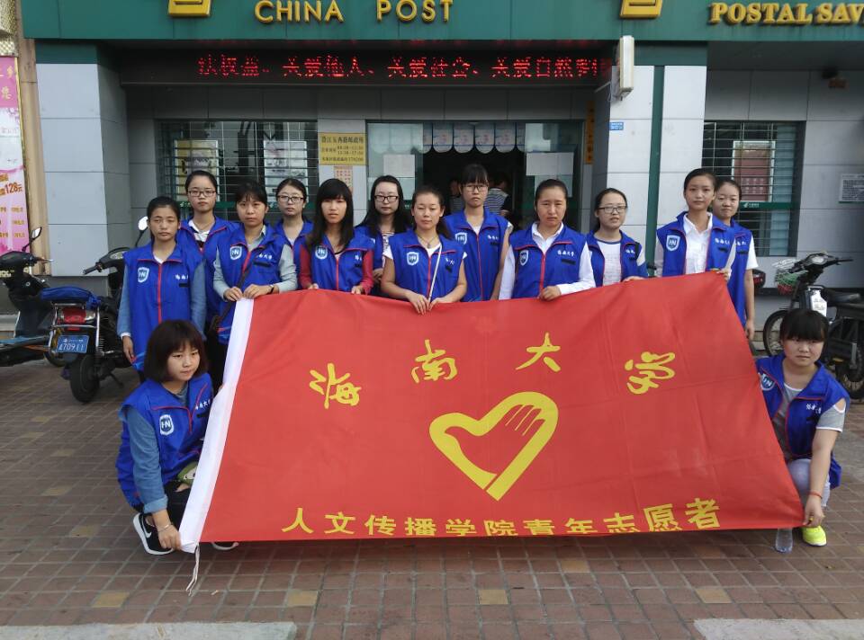 2015年10月31日和11月1日,人文传播学院的志愿者分别来到沿江五西路邮政所和海秀中路邮政支局开展“善行100”活动。