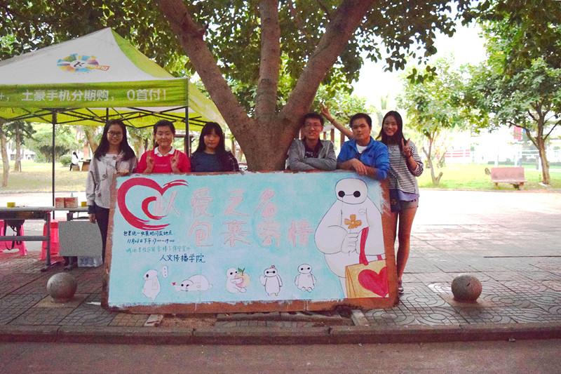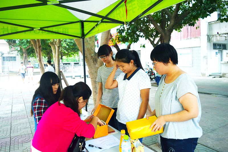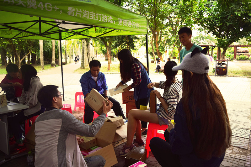 团委社会实践部的全体成员在城西校区学生宿舍楼下开展“以爱之名·包裹寄情”爱心包裹募集活动,面向本院学生收集将要送给陵水县光坡镇章宪小学孩子们的爱心包裹。