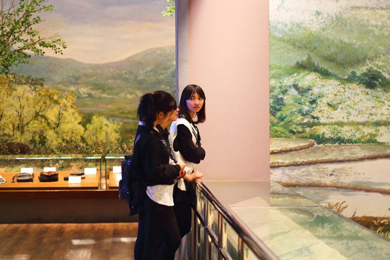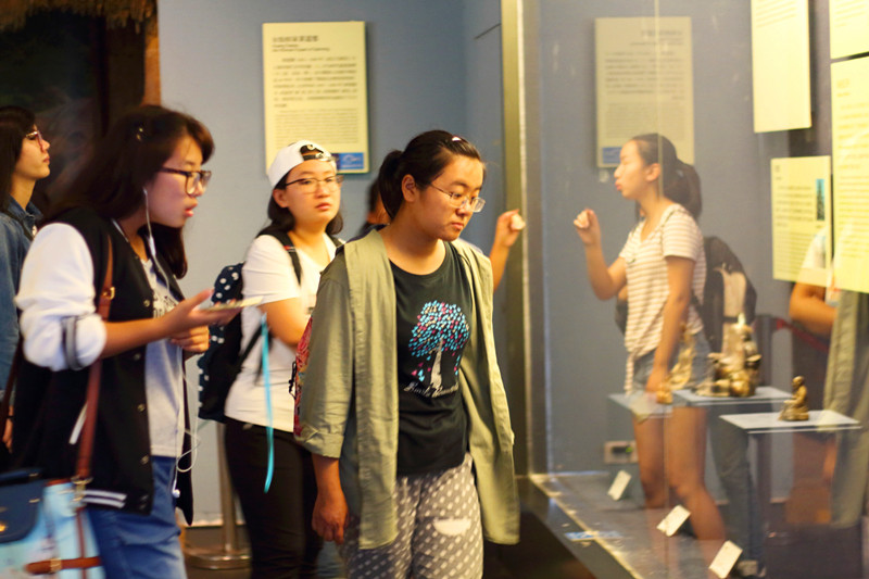 下午1:40,学生骨干培训班全体学员于北门集合,乘坐大巴前往海南省博物馆。在经过了近40分钟的奔波之后,同学们到达了海南省博物馆。首先,团委宣传部同学向大家介绍了入馆注意事项。接着,学员们有条不紊地进入博物馆。在博物馆的不同展厅内,海南省的历史、各种非物质文化遗产、各少数民族的文化介绍、各个朝代保存良好的文物等使学员们领略到了海南的文化底蕴。海口市著名书画家杨毅先生的“从心灵走来”书画展更是一大亮点。同学们在不同展厅内安静走动着,细细观赏、慢慢阅读、深深体悟海南省的独特文化魅力。有人与自己喜爱的作品合影留念;有人拿着笔记本,将自己感兴趣的知识进行摘抄;有人在书画前驻足,品味着其中韵味;还有的人与自己身边的同伴轻声讨论着自己的感悟。下午4:30,学员们意犹未尽地离开了海南省博物馆。