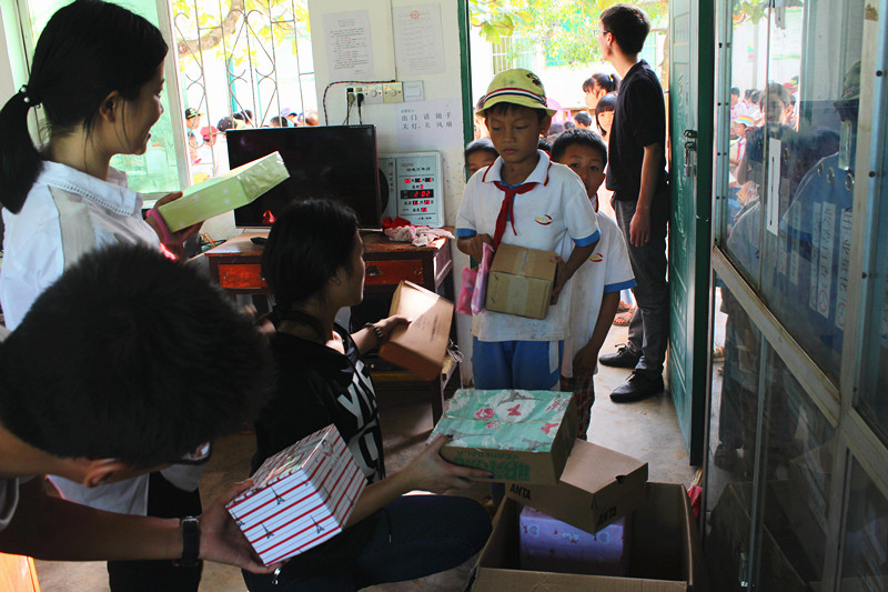 广大同学的浓浓爱心和暖意的爱心包裹送交给章宪小学的孩子们。本次活动伴随着欢乐与笑声圆满结束在日落里,小小的包裹承载着女同做爱