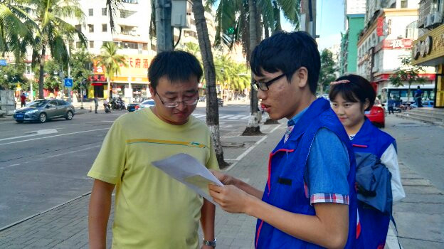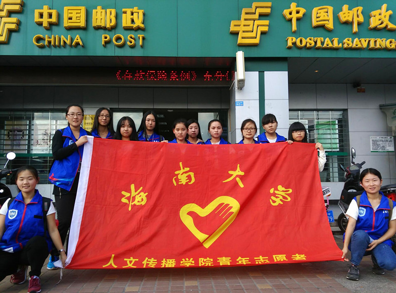 志愿者分别来到沿江五西路邮局和三东路口邮政支行开展了本学期最后一次善行100活动。12月份的海南,气温已经有所下降,但活动开展期间暖暖的太阳正好衬托着我们活动的主题——冬日暖阳,温暖爱心。