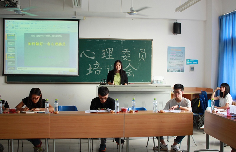 特色活动进行了宣传。 本次心理委员培训会不仅使各班心理委员的工作能力得到提升,为心理委员日后的工作指明了方向,还为班级凝聚力的提升与学校良好风气的形成奠定了坚实的基础。我们衷心的希望各位心理委员能够承担起桥梁的作用,为班级的团结向上起到积极良好的作用。