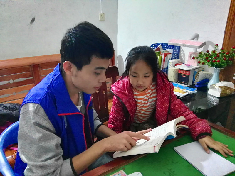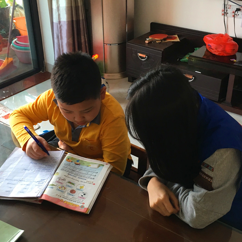 志愿者指导孩子温习功课