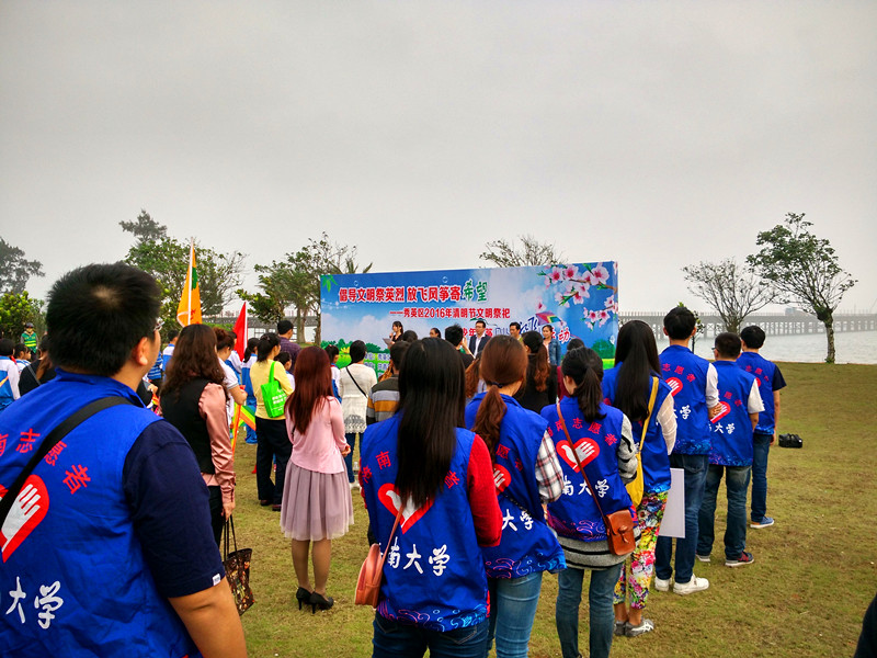 为深入推进社会主义核心价值体系建设,弘扬传统文化,传承中华文明,倡导低碳祭扫。2016年4月1日,由海南共青团秀英区委员会、秀英区教育局主办,秀英子弟学校和人文传播学院协办的清明节文明祭祀暨青少年风筝DIY放飞活动在海口市秀英区西秀海滩举行。团省委学校部部长冯翔,秀英区教育局,秀英区团委等领导出席活动。参加人员有秀英区团委工作人员、女同做爱