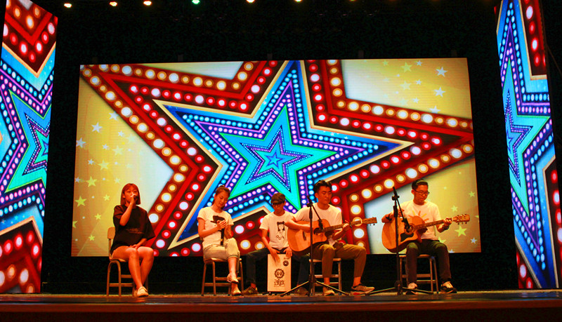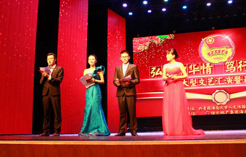 19点整,在团学青《我的中国梦》的深情朗诵中拉开了本次汇演的帷幕。本场文艺汇演以比赛的形式呈现,各年级各专业分别派出一支团队表演节目,由评委进行打分,最终评选出各支团队的名次。15级汉语国际教育专业带来的节目《世界之窗》别出心裁地融合了爵士、芭蕾、恰恰、拉丁、交谊舞等多种舞蹈元素于一体,展现了新一代五四青年主动担负起与世界各国沟通交流这一重任的勇气与担当。13级广告学带来的歌曲《Yellow》引人入胜,使观众与乐队在歌声中产生了强烈的共鸣。13级戏剧影视文学专业带来的话剧《舌战群儒》点燃全场笑点,同学们爆笑不已。15级广告学专业带来的舞蹈《AD》体现了青春的积极、时尚和动感,将青春的活力与激情演绎得淋漓尽致。最后,伴着14级汉语国际教育专业同学们的诗朗诵《前路其修远》,本次文艺汇演圆满落幕。13级戏剧影视文学专业以8.92分的高分众望所归地收获了一等奖的好成绩。13级对外汉语、13级广告学、14级汉语国际教育凭借过人的实力获得了二等奖的好成绩,其他各专业的表演团队收获三等奖。此外,凭借之前的“海大人文青年”节目网络投票,15级汉语国际教育专业获本场汇演“最佳人气奖”。