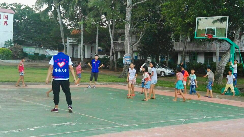 志愿者给孩子们上体育课