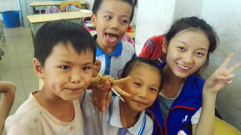 志愿者与孩子们在一起