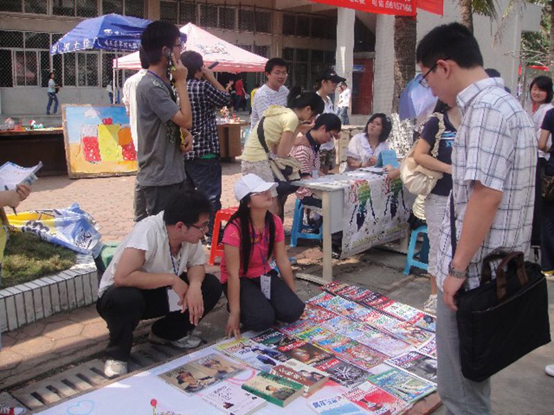 本次爱心活动的义卖物品都是同学们用环保实用的材料手工制成的,这些物品所卖得的钱将捐赠给海口市福利院。经过爱心投票,义卖物品“可怜巴巴笔筒”和“屋檐下的微笑”分别获得最具创意奖和最具环保价值奖。活动现场,还有很多同学义卖自己的杂志和书籍,大家干得热火朝天,义买的同学也纷纷献出自己的一片爱心。