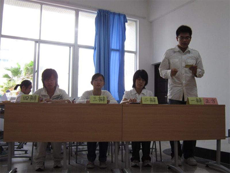 11月28日上午9:30,人文传播学院辩论赛在四教109教室激情开赛。由人文传播学院学生会秘书处秘书长孙妍同学担任辩论赛主席,资深辩手杨越、霍辉、胡艳秋以及外国语学院万宝琳担任本次辩论赛的评委。 辩论赛分两场进行,第一场辩题为“大学食堂是否应该涨价”,正方为对外汉语专业的同学,支持涨价;反方为戏剧影视文学专业的同学,反对涨价。 辩论赛通过开篇立论、攻辩、攻辩小结、自由辩论、总结陈词等环节的激烈角逐,充分展现了人文学子的广博学识及灵敏的反应力。辩论结束后,评委对双方辩手进行了点评,并提出了辩论方面的相关建议,使同学们能够不断提高自己的辩论技能。最后经过评委评议,反方获胜,正方一辩被评为最佳辩手。 第二场辩题为“大学期间,学习更重要,还是实践更重要”,正方为广告学专业的同学,认为学习更重要;反方为汉语言文学专业的同学,认为实践更重要。辩论的过程同样十分精彩,不亚于第一场。最终主席宣布,正方获胜,反方三辩被评为最佳辩手。 辩论赛结束,同学们纷纷表示很有收获,并认为这是一个展示自己的大好机会,从中也得到很多经验、学到很多知识。同学们都十分期待参加下一次的辩论。