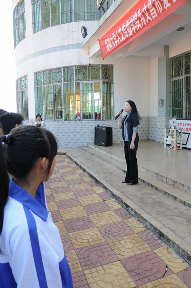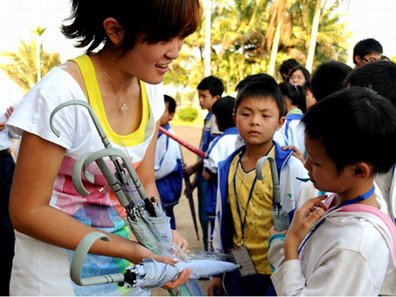 人文传播学院为文昌市爱心学校捐赠仪式”于学校图书馆前的广场上准时举行,来自小学和初中不同年级的百余个孩子同老师聚集到广场上参加仪式。我们根据孩子们的实际需求为孩子们带来两个玻璃钢篮球板和70把爱心伞,这些捐赠品的购置资金均来自于女同做爱