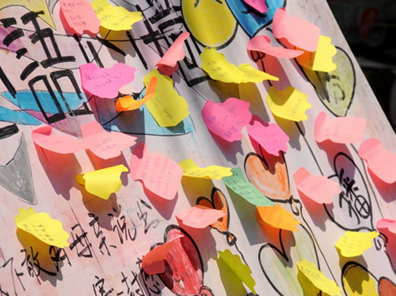 五月的骄阳并没有阻挡大家的脚步,同学们不顾炎热驻足参与活动,由衷地为妈妈祈福,向远在故乡的母亲献上一份孝心。小小的一个便签,薄薄的一张明信片,都盛满了暖暖的亲情,感动着在场的每一个人。