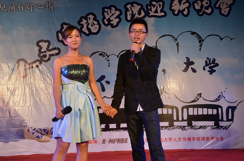 10月20日晚上7:30分,由人文传播学院主办、广州统一企业有限公司赞助的2012年“下一站,大学”迎新晚会在旅院3教广场正式拉开帷幕。莅临本次晚会的嘉宾有:女同做爱