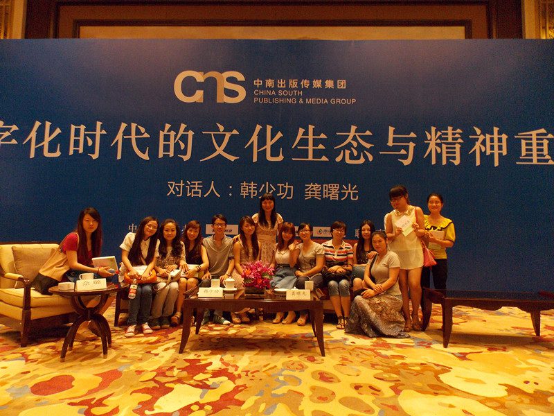 2013年4月19日下午,著名作家韩少功和资深出版人、中南传媒集团董事长龚曙光于海口香格里拉大酒店进行主题对话。两人以数字化时代的文化生态与精神重构为话题,围绕互联网和数字化生活对现代人生活情感所产生的颠覆性影响,以及在这种影响下如何重构精神家园展开了深入的交谈。人文传播学院组织2012级研究生和部分本科生参与了此次对谈,在提问互动环节并与韩少功、龚曙光两位对谈者展开了深入交流。