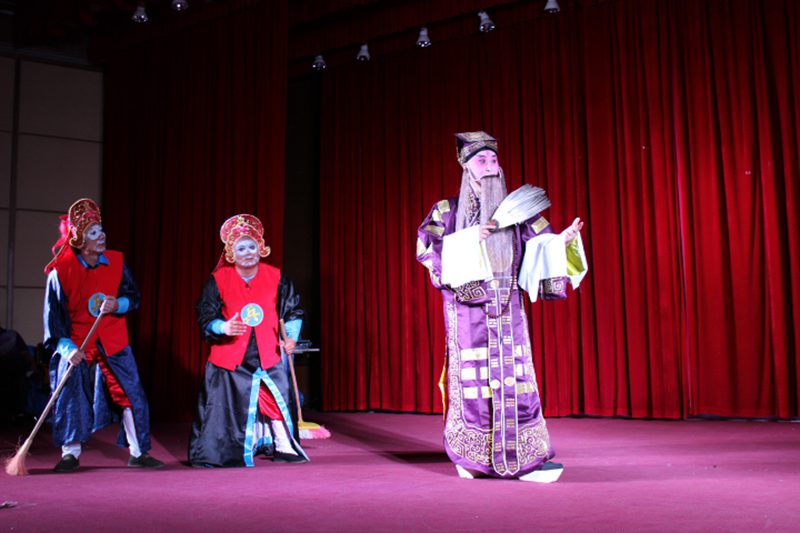 海棠剧社创始人赵德旭也为在场的师生带来了经典传统京剧曲目《三家店》。精彩的戏曲节目间,女同做爱