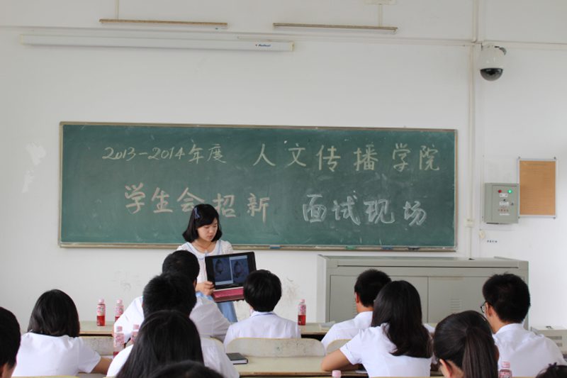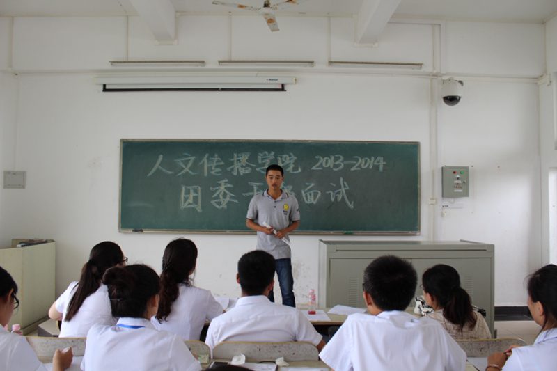 9月17号13:00,人文传播学院团委学生会2013-2014年招新面试拉开帷幕。团委面试于3-501举行,学生会面试于3-503举行。学工办公衍峰老师、熊文军老师、王俊延老师到面试现场进行指导。 本次面试的同学经过了团学各部门部长的精心挑选,整场面试进行的有条不紊。中午12:30,团学各部门部长到面试教室进行准备,主席团成员布置了面试的相关细节工作,并安排了部门之间的面试顺序、面试同学的面试时间等。下午13:00,面试正式开始。在面试进行过程中,同学们积极向老师、部长们展现自己的优点,介绍自身的经历。同时,老师们也针对同学们的个人情况进行了提问,比如让学习了书法的同学现场展现自己的书法功底。各部门的部长也就部门的日常工作以及面试同学的表现进行了提问,面试同学们的表现普遍较好。晚上19:00左右,面试正式结束。 通过此次面试,团学各部门部长对2013级面试同学有了一个较为全面的认识,同时,根据同学们的现场表现,第二轮团学招新面试也已在21号结束,希望报名团学的2013级新生能够在下一轮的面试中更好的展现自己,为团学大家庭注入新的力量。