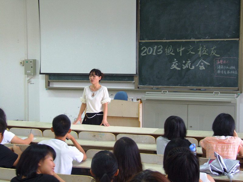 11月2日上午9:40,人文传播学院2013级中文系校友交流会在3教212准时举行。本次活动共邀请了两位校友参加,一位是05级校友徐兰竹,目前担任新房集团海南分公司片区主管一职,另一位是09级校友李小叶,目前在本校读研,并担任13级对外一班的班主任一职。 活动开始,徐兰竹学姐首先开始同大家进行交流,介绍毕业后选择直接工作应该做的准备。徐兰竹学姐认为中文系的学生在大学期间应该努力提高自己的文化修养,多储备文化知识,以弥补本专业缺乏竞争技术的缺点。其次,每个大学生都应该学会自主思考和自主摸索,拥有自己的想法。然后是李小叶学姐介绍选择考研应该做的准备。她认为大学学习需要抓住要点,明白老师的意图,同时要合理利用和分配时间。此外,在大学里每个人的个人职业规划不同,面临的选择也就很多,但最重要的是要有敢作敢为的行动力。除了将学习放在本位外,也要进行多方面的尝试,充实大学生活。其后还有自由提问环节,同学们纷纷提出自己感兴趣的问题,现场气氛热烈。 举行此次交流会的主要目的是给在校的中文系学生起到一个向导的作用,对毕业后大家选择考研、出国或直接工作给予相关指导。校友交流会不仅使大一新生受益匪浅,同时也加深了各级校友间的感情。希望同学们能通过此次交流会做好学习规划,实现学习生活目标。
