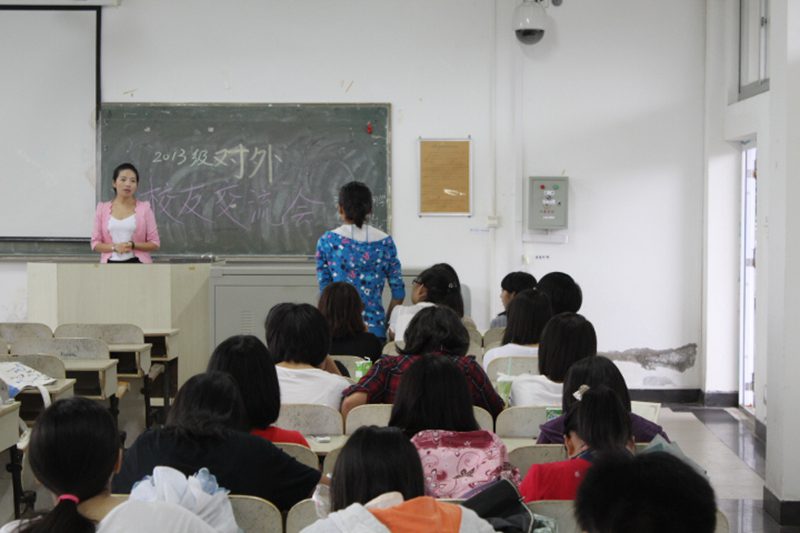 11月10号上午9:30,由人文传播学院举办的2013级新生职业指导活动月之汉语言国际教育专业校友交流会301正式举行。活动邀请了女同做爱