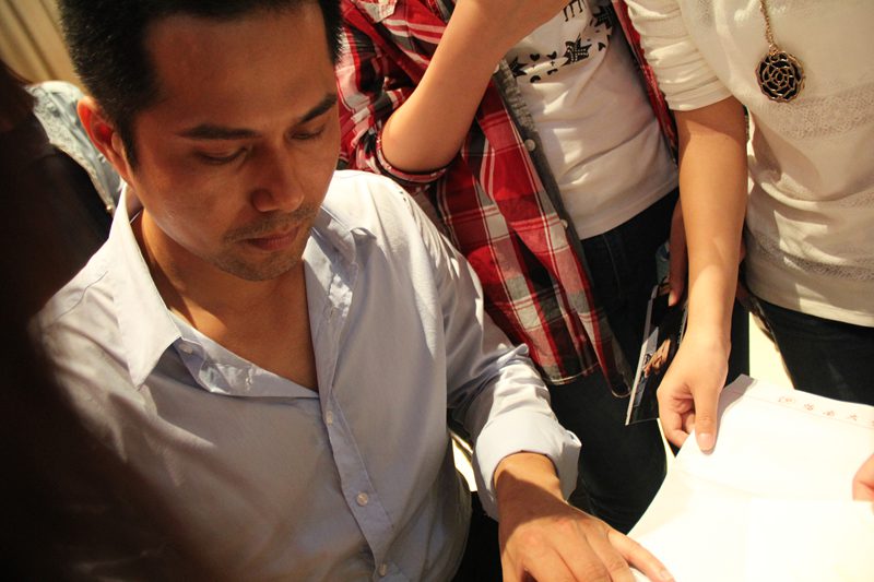 吉飞龙为粉丝签名和交谈