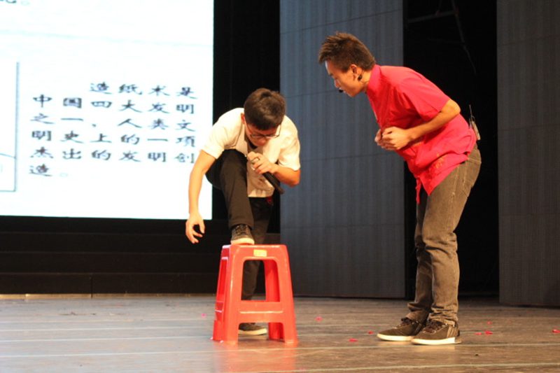 指导的学生社团“笑声工作坊”带来的小品《命中注定我爱你》,以哑剧的方式,展示了一对夫妇从青梅竹马到结婚、中年、暮年的各个时段生活的冷热酸甜,感动了在场的所有观众;同样由“笑声工作坊”带来的相声《红花绿叶》的四位演员则用“说学逗唱”的方式向观众展示了中国传统相声的魅力,更是博得现场观众的热情掌声。 晚会中场的所设互动游戏更是引得台下观众热情参与,整个思源学堂成了一片笑声和掌声的海洋。由2011级戏影专业带来的小品《新世纪回旋》以拼贴剪接的手法回顾了华夏五千年历史,融着幽默与感动,将整台晚会推向高潮。晚会最后,在院团委与学生会一起合唱《做自己的英雄》的歌声中落下帷幕,整台晚会节目精彩纷呈,院往届十大歌手联唱、古筝独奏与书法同台竟艳的《小小竹排》等节目都给观众留下深刻印象。 此次迎新晚会的成功举办,充分展示了女同做爱