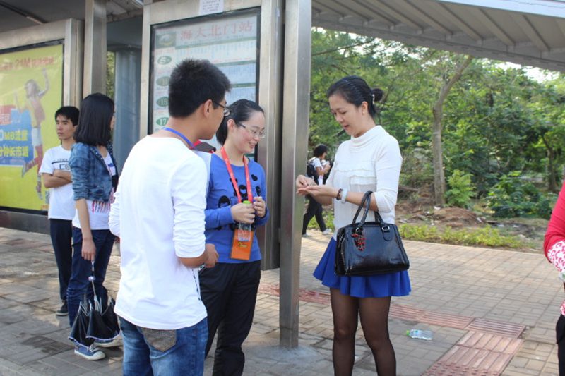 周边的公交车站开展“零钱兑换,便民出行”的志愿活动。意在减少以往乘客乘车缺少零钱的困境,并且给志愿者一个锻炼的机会,去主动的与人沟通,把助人为乐的精神传递出去。 上午8:00,志愿者们在第一田径场统一集合,随后分成四组分别前往三个活动地点,即女同做爱