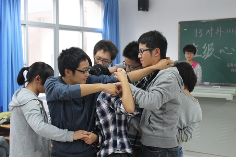 11月22日,人文传播学院13级汉语言国际教育1班在5教315教室开展了以“适应大学,迎战未来”为主题的心理团体辅导活动。本次活动由心理委员李润佳和符德炎同学主持,13级汉语言国际教育1班的全体同学参加了此次活动。 活动开始时,李润佳和符徳炎同学通过一段视频,向班级同学展示了现在大学生的生活现状。随后,通过一套心理测试题目,对班级同学的心理健康状况进行测试。活动过程中,李润佳和符徳炎同学带领班级同学进行了“解开千千结”、“心有灵犀”、“思维跳跃”等趣味横生的团体辅导游戏。同学们积极参与,掌声阵阵。