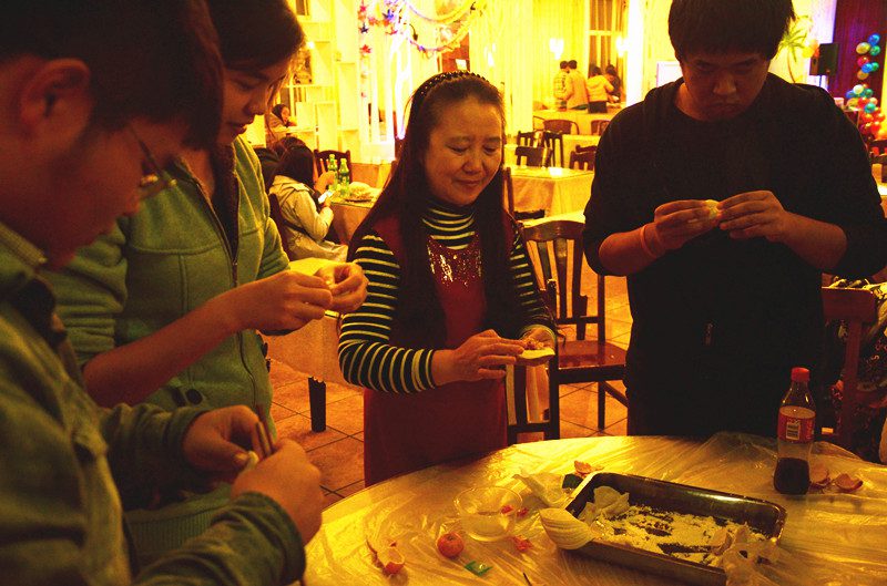 冬至是中国农历中一个非常重要的节气,也是中华民族的一个传统节日,冬至俗称“冬节”、“长至节”、“亚岁”等。这一天是北半球全年中白天最短、夜晚最长的一天。中国大部分地区在这一天还有北方吃饺子、南方吃汤圆和南瓜的习俗。谚语有“冬至到,吃水饺。” 2013年12月22日晚,人文传播学院团委和学生会的同学们齐聚“印象海大”餐厅,开展了一场妙趣横生,喜悦温馨的“温暖过冬至,团圆饺子节”活动。人文传播学院党委孙晓瑗副书记,学工办公衍峰老师和熊文军老师都参加了这次饺子节活动,与团学的学生干部们一起联欢包饺子,温暖过冬至。 活动于当晚19时正式开始,主持人简洁的开场之后由孙晓瑗副书记为本次活动致辞。孙晓媛副书记笑容满面,向一个学期以来团学的辛勤工作致以谢意,热情祝愿团学的学生干部们在这次饺子节活动中能玩的开心,远离家乡也能感受到团学大家庭的温暖!同学们用热情的掌声感谢了孙书记的精彩致辞。紧接着在几个热场的小游戏之后便开始了妙趣横生的“齐心协力包饺子大赛”,同学们按部门组合成7个小组,各个小组内部分工协作,合力包饺子,孙晓媛副书记和公老师、熊老师也参与了进来,与各组同学一块包饺子。饺子包成后由团委办公室的同学送入食堂内部烹煮,不一会儿,热腾腾的饺子便出锅了。同学们一边享用着自己的劳动成果,一边观看了团学每个部门的PPT展示,不时发出欢声笑语,氛围其乐融融。 活动进行了约一个半小时,团学大家庭的所有成员通过这次“冬至饺子节”又团聚一堂,让每一位身在异乡的同学在佳节时分感受到了家的温暖!人文团学,不是家庭,胜似家庭!