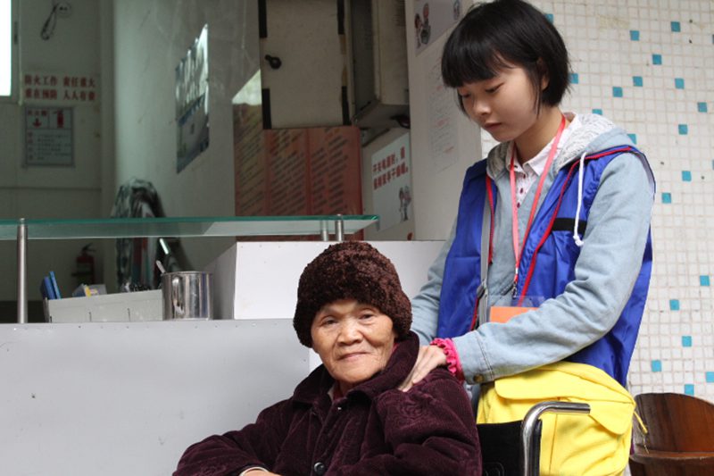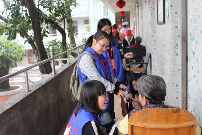 志愿者们和老人聊天