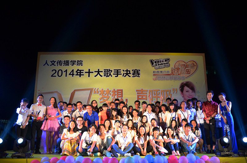 bingo 乐队的火热开场之后,四位主持人盛装亮相正式拉开了比赛的序幕,经过初赛、复赛层层选拔留下来的12位优秀选手炫丽登场。本晚的决赛分为两场进行:第一场由抽签决定出场顺序和组合方式,两名选手共同完成一首歌,评委会根据两个人的表现进行分别打分。第二轮会根据抽签顺序各位选手依次演唱,最后取两轮的成绩综合算作选手的最后得分。经过两轮的比拼,依据总成绩高低进行排名和颁奖。 得力于前期良好的宣传,本次晚会取得了很好的影响。旅院广场站满了前来观看的同学,他们热情的欢呼,积极的互动将这场热烈的比赛推向了一个又一个高潮。在第一轮的比赛中,各组选手密切的配合,完美的诠释给在场的每一位观众奉上了一场精妙绝伦的试听盛宴。在中场舞蹈助演和微博抽奖环节结束后,第二轮的比拼正式开战。由于是各自为营,所以选手们也都激发了自己所有的能量,展开了王者的巅峰对决。有劲歌热舞的活力四射,有经典歌曲的独特魅力,潮流韩曲、优美民歌、悦耳民谣一首接一首的尽情演唱将整场晚会带入了一个高潮。经过激烈角逐,最终卿月同学夺得大赛冠军,熊一颖、韦媛夺得亚军和季军,除此之外刘菁、陈新心、曹翰苑、王川远、宋歌、陈洁、陈灿也都入围十强。而李嘉欣获得最佳台风奖,吴旗获得最具潜力奖。 “梦想 声呼吸”,用歌声呼吸梦想,用梦想表达歌声。12位歌手在舞台上为梦发声,为梦拼搏也无不感染着每一位观众。在这里我们不仅要为充满梦想的声音鼓掌,更要为拼搏追梦的劲头鼓掌。我们相信更多的人文学子也正在属于自己的舞台上追逐跳跃,在自己守望梦想的年华里顽强拼搏,我们也更加的希望每一个梦都能开花,每一份追求都能成功。