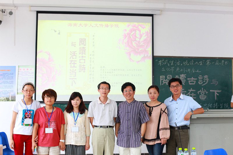 4月29日下午15:00,人文传播学院“书式生活,悦读人生”读书文化节之“阅读古诗与活在当下”读书沙龙活动在4教203如期举行。本次沙龙活动旨在增强同学们对古代传统古诗词的认知度,提高大家阅读和学习古诗词的兴趣,使同学们将中国古代优秀传统文化与现代社会紧密相结合。莅临沙龙活动嘉宾有人文传播学院李溢教授,张江南副教授;人文传播学院仲冬梅副教授主持本场沙龙活动。学工办熊文军老师也参加了本场活动。 活动开始前,主持人仲冬梅老师作了“阅读古诗与活在当下”的简要发言,作为古典文学老师,仲老师提出了自己对于古典诗词的理解与看法,随后由张江南老师发言,张老师虽然是西方文学的研究者,但他却认为自己在不断与西方诗歌的接触中深感与其是疏离的,即使可以感受到它所表达的情感,但却很少能产生文化根性意义上的体验与共鸣;他提出中国人始终都保持着一份属于自己的独立品性,古典诗词以它独有的韵律与味道熏养出我们的文化品性。接着李溢教授围绕这个话题做了动情的发言,他提到中国的古诗词有其特有的“风度”“气质”与“魅力”,它是一种说不出的美,是古人的一种生活方式,在与日本文学的比较中他深刻的阐述了一个观点:中国文化的博大精深是其他文化所不能及。仲冬梅老师在总结中提出了如果说中国的文学是美与善的文学,那么西方文学则是真与美的文学,它们看似区别不大,但是仔细琢磨,中国的古诗词是诗人的一种情感诉求,活在当下也就是活在历史中,从历史当中不断地审视自己,正视自己,努力培养自己的独立心灵,阅读古诗从而对自身的生命加以审视。老师们独到的见解,让参与活动的同学听到了思想的交锋与碰撞,同时也引听众投入其中。 活动还单独抽出半个小时的时间和听众进行互动交流。围绕主题,现场的同学向三位老师提出问题,老师们进行了一一解答,将阅读古诗如何与当下生活相联系提出了自己的见解与看法,他们指出阅读古诗是在追本溯源中直接与历史对话,而活在当下则是从阅读古诗的体悟中汲取营养,获取当下的力量,老师们的耐心解答使在座的同学都受益匪浅。 腹有诗书气自华,最是书香能致远。中华传统古诗词经久不衰,历久弥新,在当今社会它将会洗涤我们的思想,净化我们的灵魂,让我们阅读经典诗词,更好的活在当下!