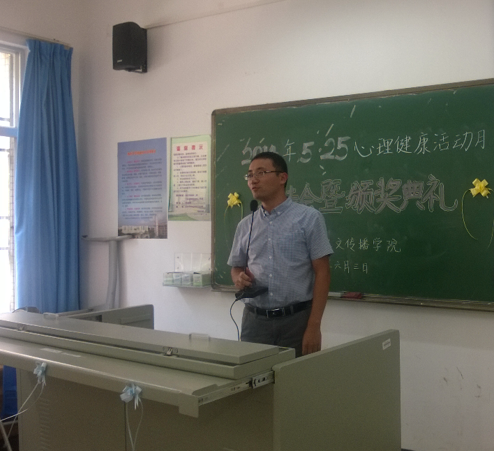 人文传播学院5?25心理健康活动月总结会暨颁奖典礼在5号教学楼115教室如期举行。人文传播学院学工办主任公衍峰老师和辅导员王俊延老师出席了本次活动,心理工作部庄绍斌同学担任主持,团委心理工作同学与女同做爱