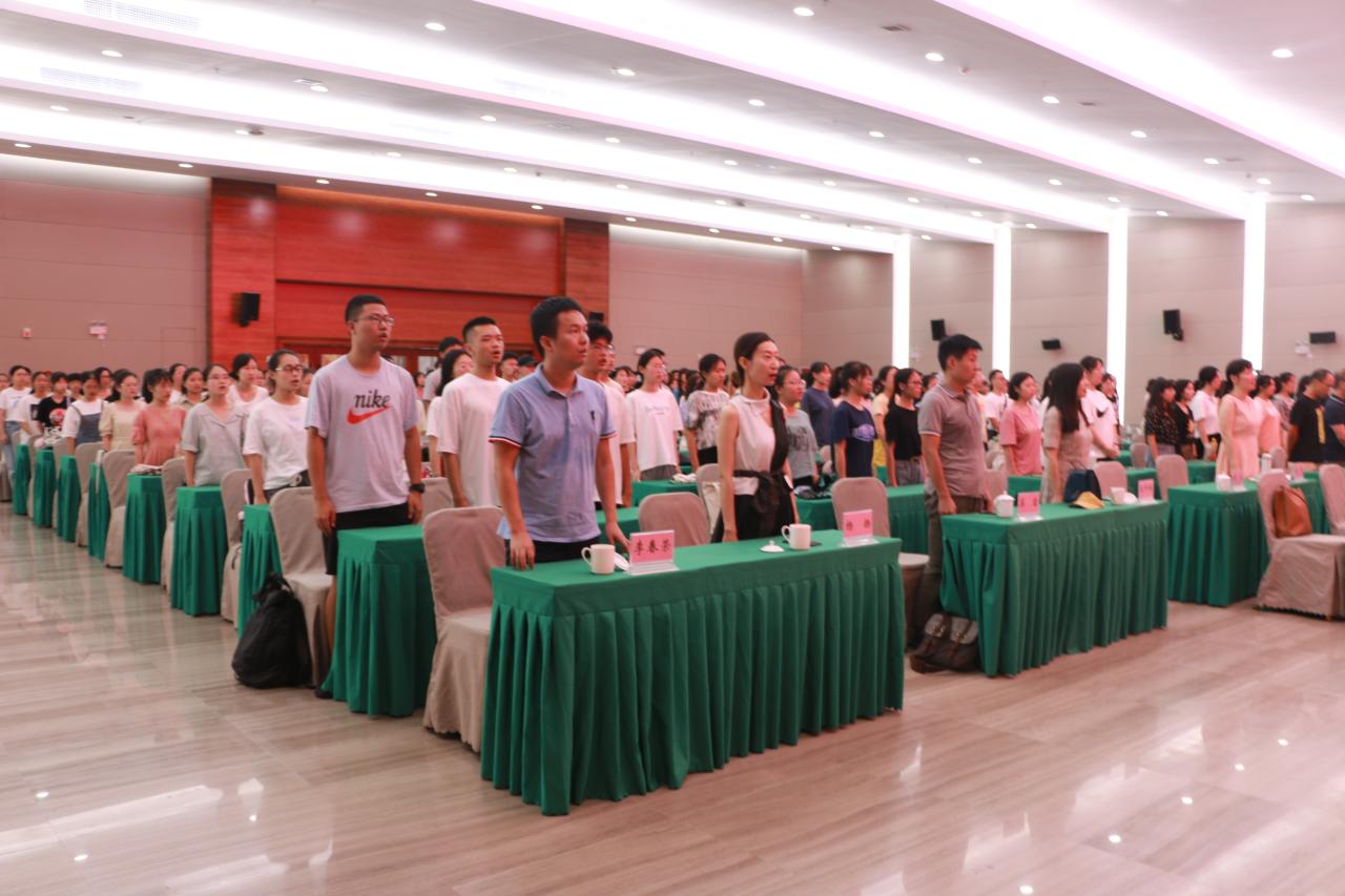 典礼伊始,大屏幕上播放学院宣传片及最新录制的迎新视频,而后,全体师生起立,激情饱满地奏唱国歌。随后,教师代表蒋锐老师进行发言。蒋锐老师首先对新生的到来表示欢迎,她鼓励同学们应当找到自己真正热爱的东西,用包容的思维开拓的自己观念,并表达了对新生真切的祝福和希望。