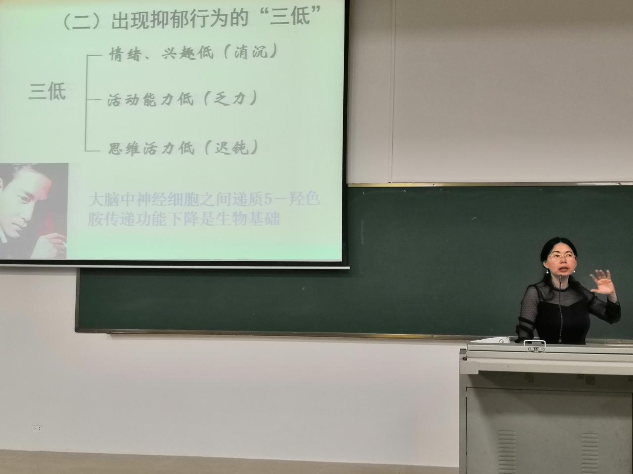 心理健康教育中心主任吴九君老师主持并讲解。吴老师就大学生常见的心理问题进行了专业培训,培训内容主要包括心理健康标准、精神疾病以及防止自杀三个部分。