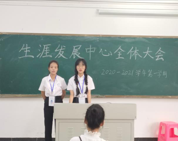 人文传播学院生涯发展中心第一次全体大会在城西校区综合教学楼4A05顺利举行。生涯发展中心副主任王淼主持本次会议,各部门部长及全体实习干事参与会议。
