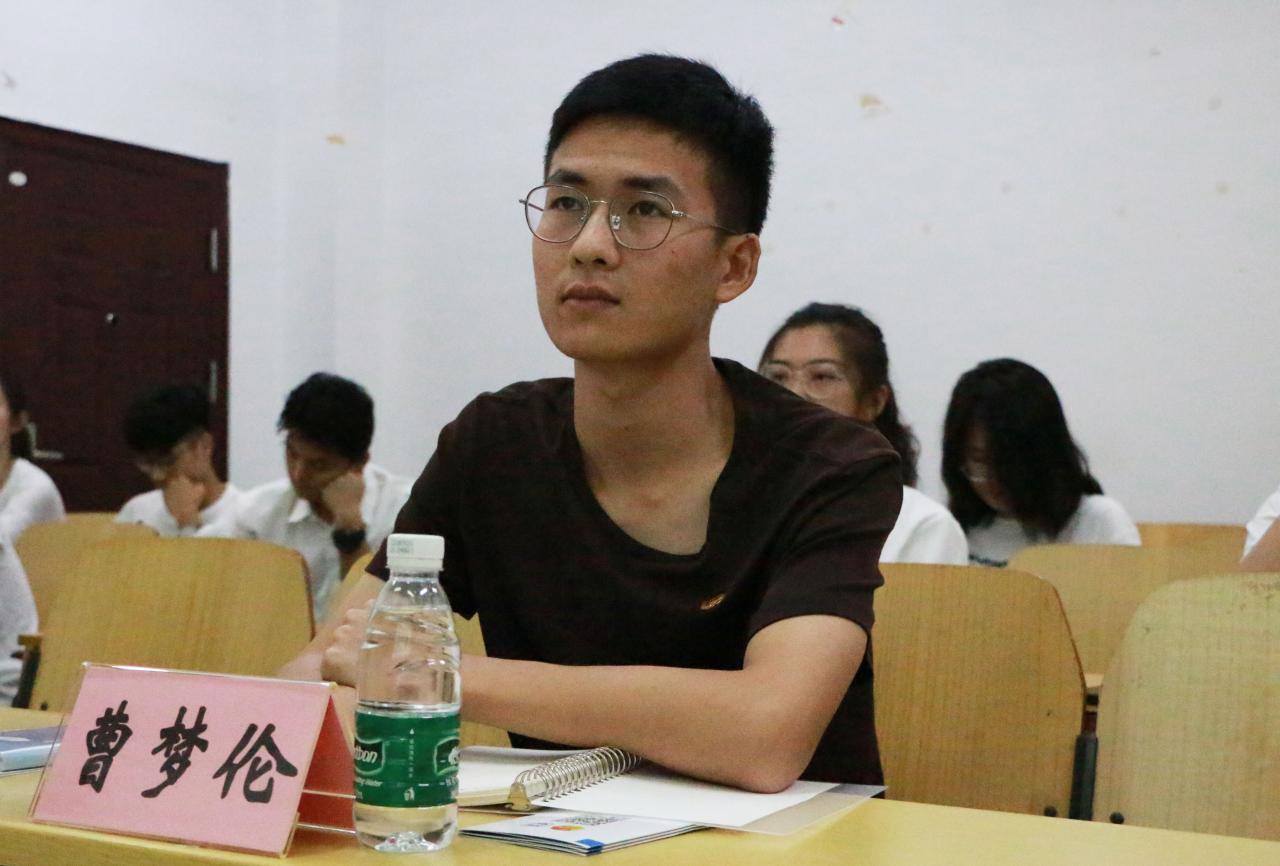 而后,曹梦伦结合亲身经历,对本班团支部的情况及获得的荣誉进行简单介绍,从组织、制度、阵地三个方面讲述支委会在团支部建设中肩负的任务,同时分享团支部组织的各项活动和建设经验,鼓励各团支部支委带动同学共同建设服务社会、积极活跃的团支部。
