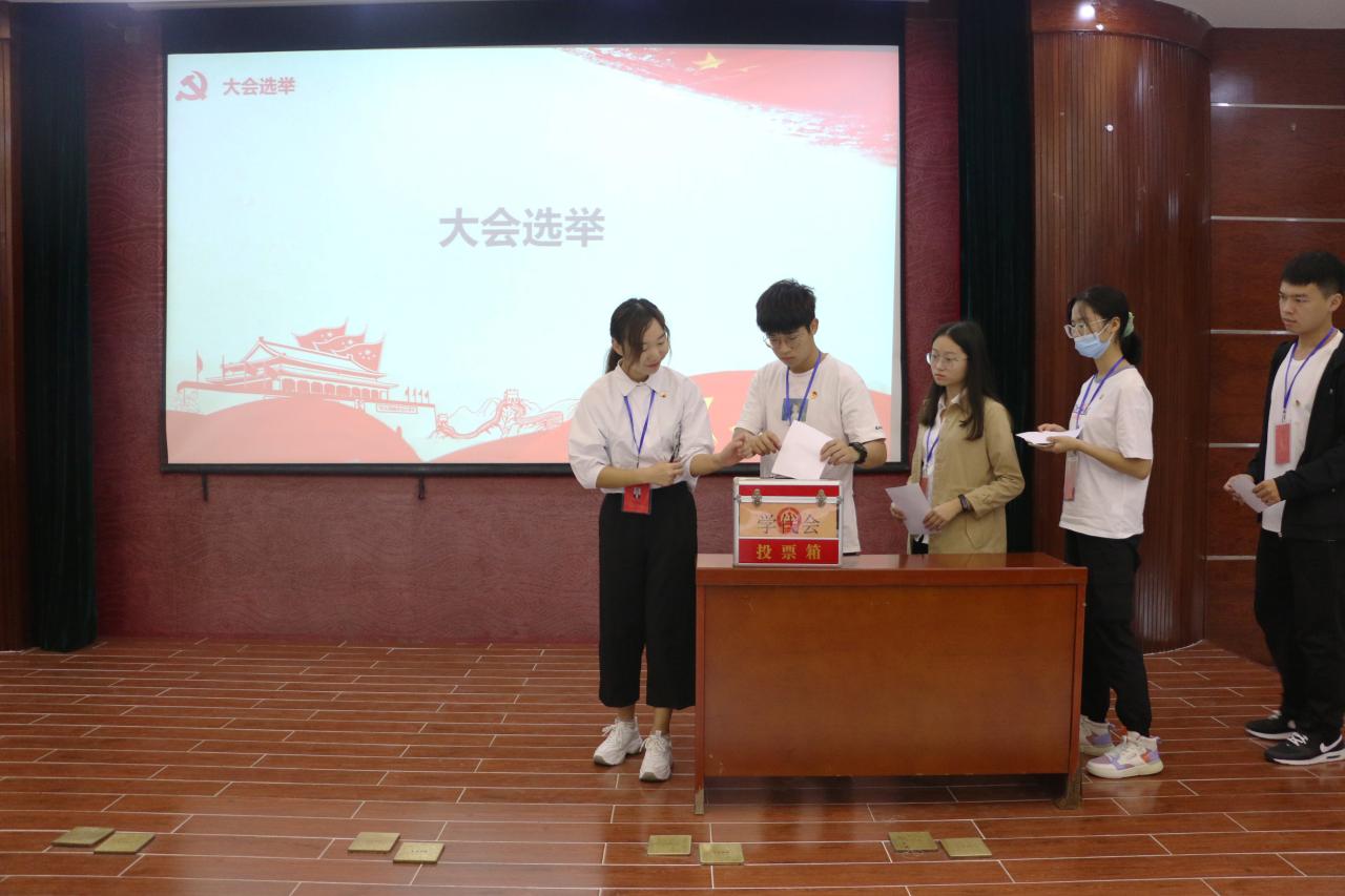 第三阶段,大会选举。与会代表审议通过了《大会选举办法(草案)》;委员候选人依次亮相;通过监票人、计票人、唱票人名单;代表们忠实履行职责,投票选举产生新一届学生委员会委员。