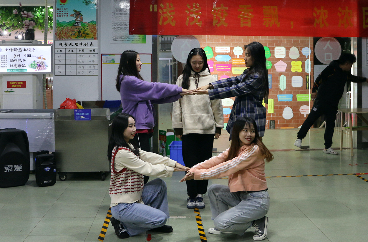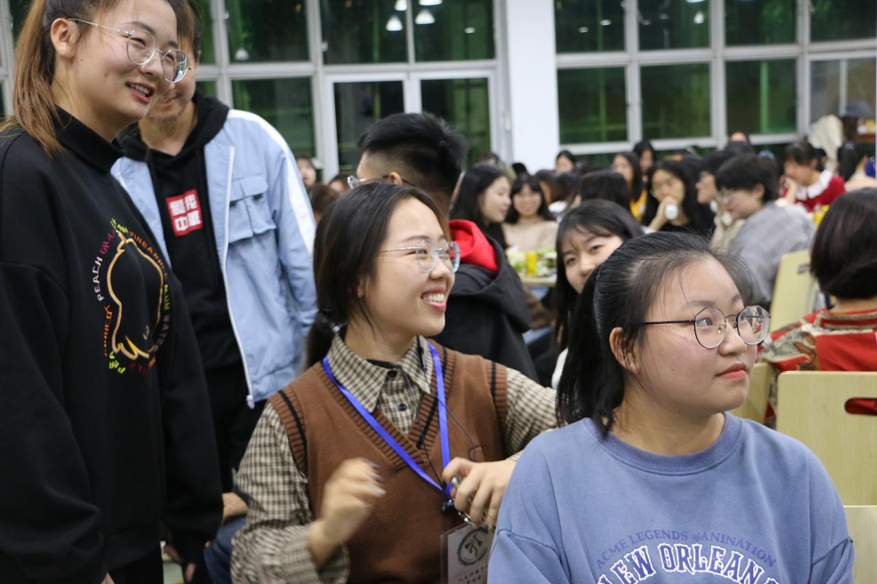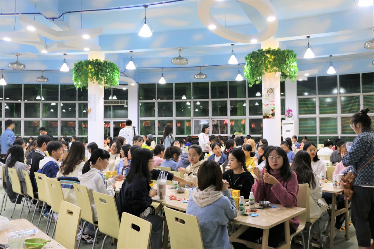 晚上19时30分,城西食堂二楼灯光明亮,凉意习习的夜晚在欢笑声中显得格外温暖。食堂内,活动主办方忙着拼桌子、拿零食、发饺皮、分肉馅,团学组织的成员们脸上写满期待。在两位主持人致开场词后,开场舞点燃现场热烈的气氛。