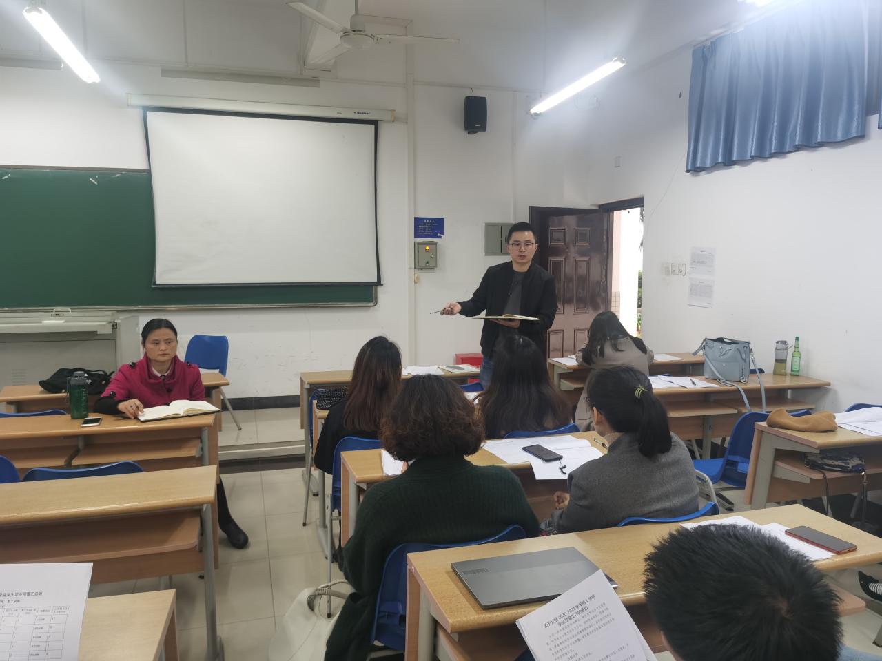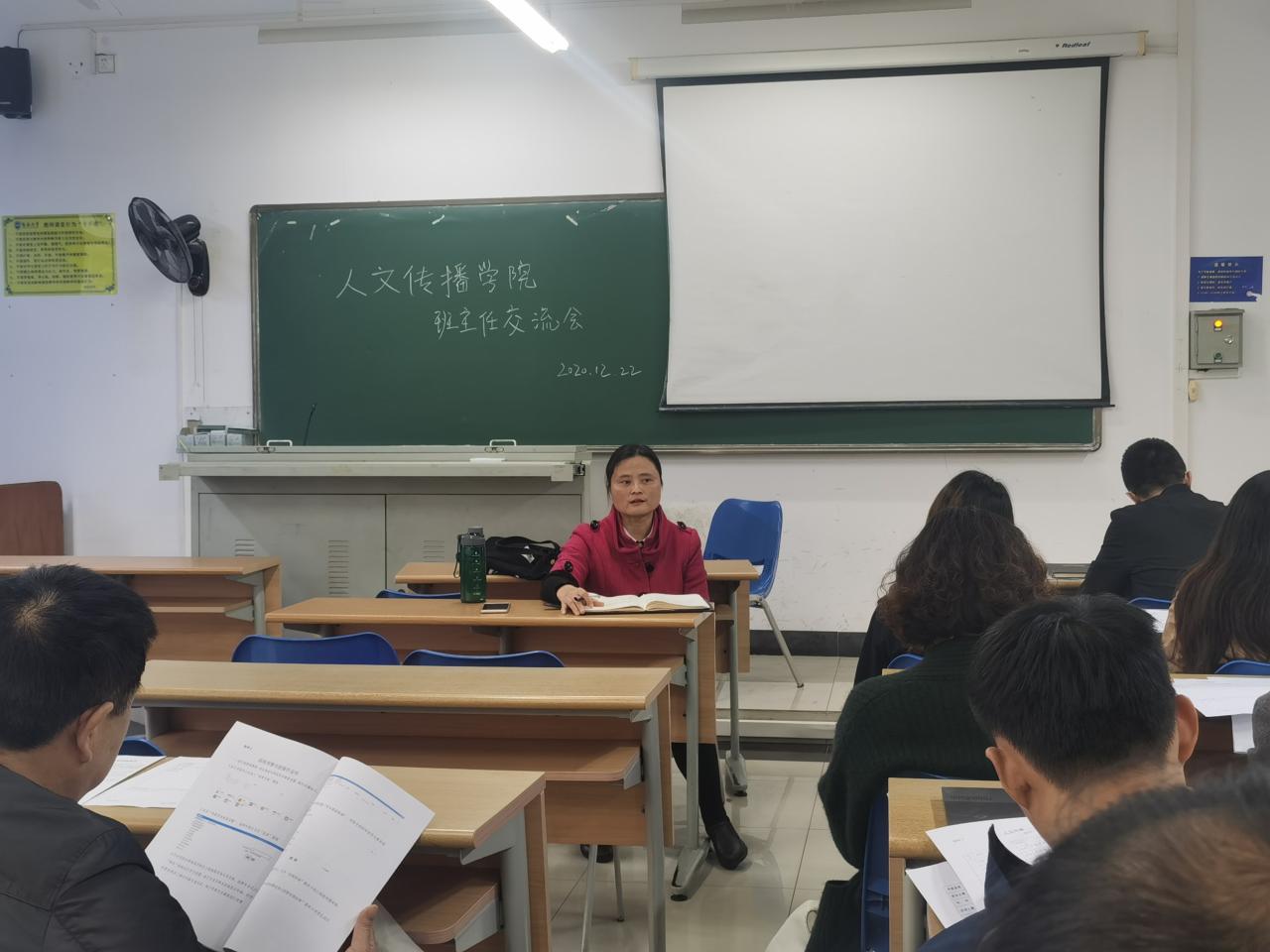 为促进班级建设,维持良好的教学秩序,12月22日下午,人文传播学院在5号教学楼107教室召开班主任交流会。党委副书记罗邻球、学工办老师李润东、李洁、宋鸽以及2017—2020级全体班主任出席本次会议。